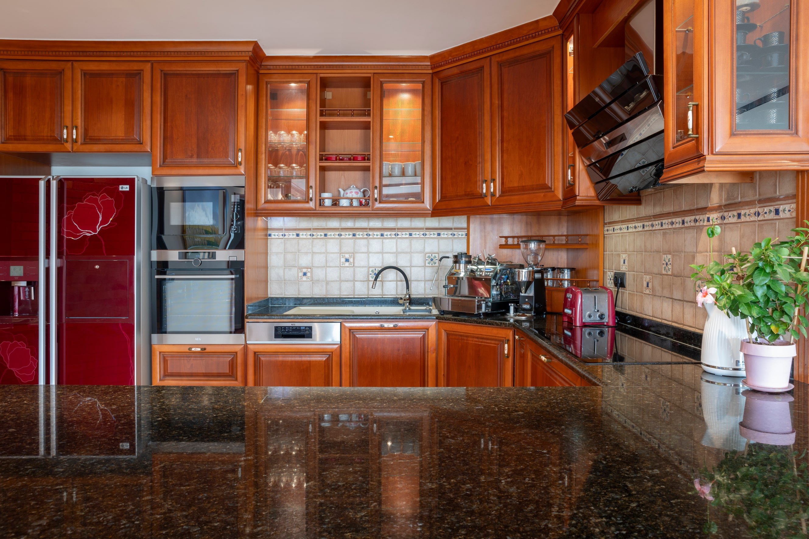 - privát konyha teljes felszereltséggel – hűtő, fagyasztó, sütő, 6 zónás főzőlap, mosogatógép, kávéfőző, mikro, tálca, étkészlet (tányérok, evőeszközök), poharak, teáskanna, vizeskancsó, márvány konyhapult és tálaló