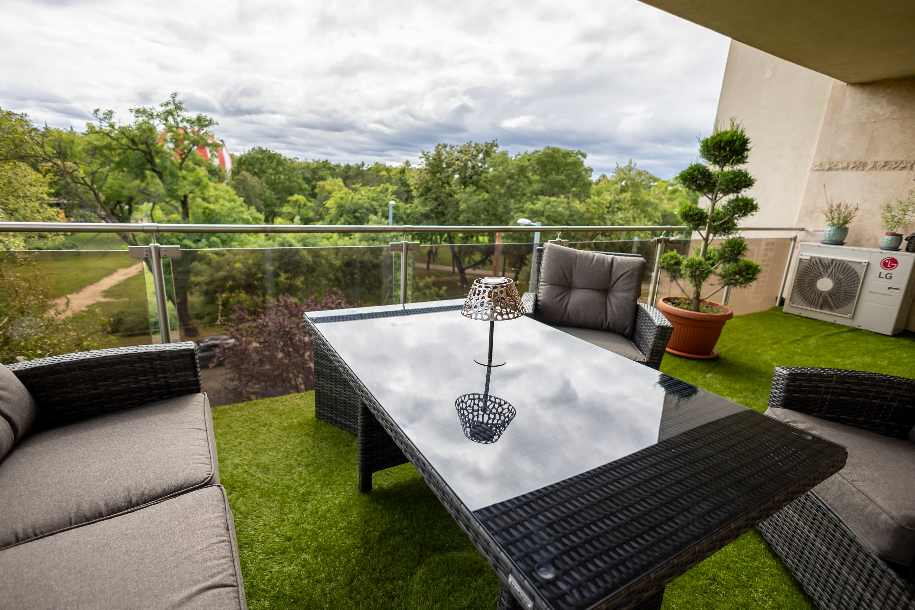 - 24 nm-es privát terasz, kerti bútorokkal, panorámás kilátással